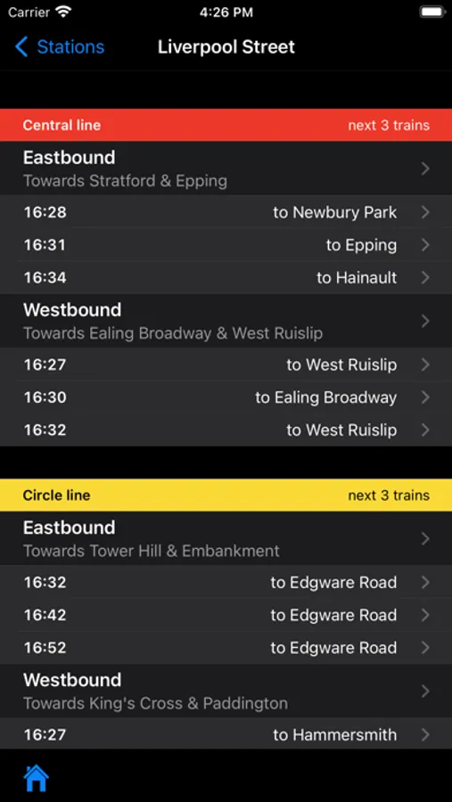 IMPORTANT: Tube Times does not display any live train time information. Its timetable is based on data published by Transport for London, and actual train times will be affected by line closures, engineering work and other delays, so check before you travel.