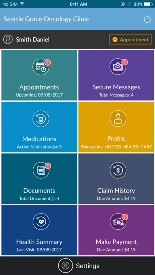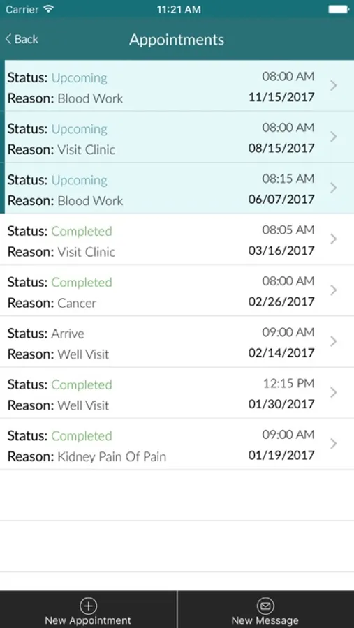 • Appointments: Gives you flexibility to setup an appointment with your provider and cancel them pre-hand if required.