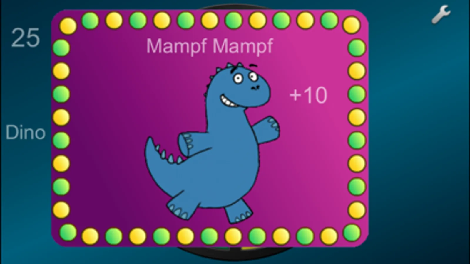 Du erhältst Bonus-Punkte für Kombinationen wie "Stampf Stampf", "Mampf Mampf", "Dino Stampf" usw, die Bestandteil des "Dino-Songs" aus den Kindergeschichten vom Blauen Dino von Gschichtefritz sind.