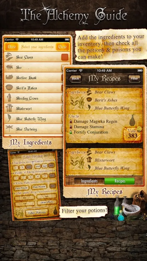 Alchemy Guide is the Ultimate App to check ingredients effects, descriptions and values in Skyrim