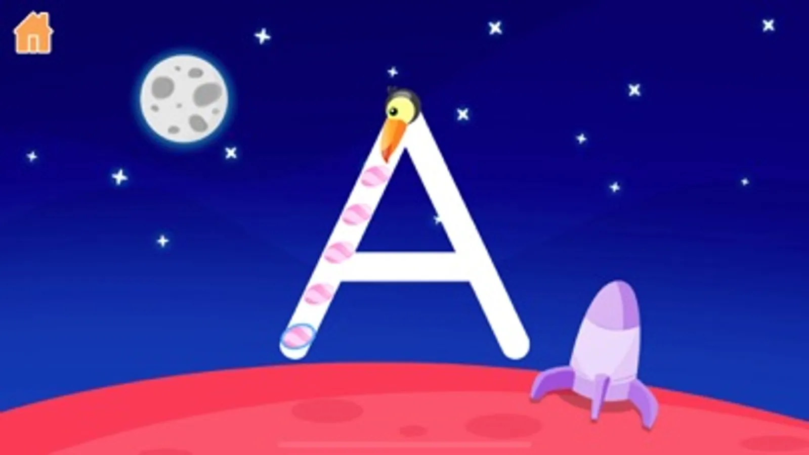 Learn that C is for cat and learn to spell ‘cat’ too. Trace letters in space, have fun with alphabet flashcards, and spell animal names in the stars!