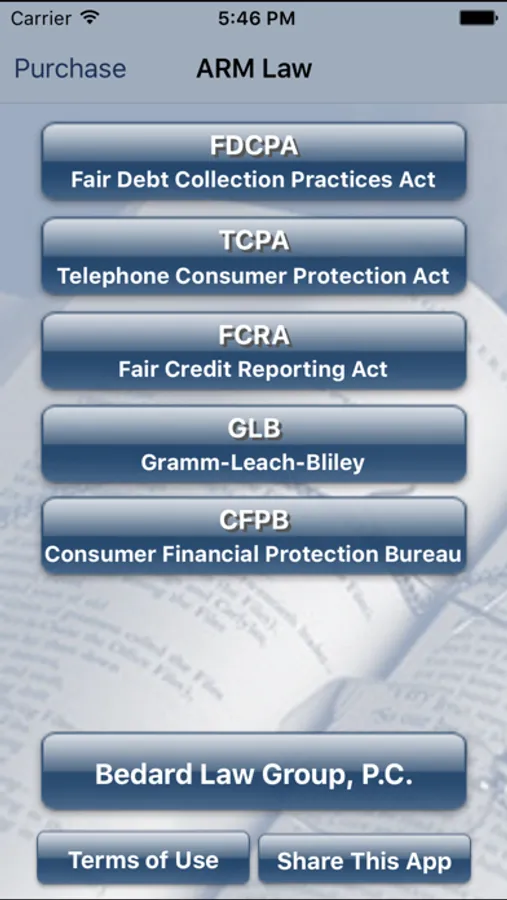Download this app to obtain information about the Fair Debt Collection Practices Act, the Fair Credit Reporting Act, the Telephone Consumer Protection Act, and the Consumer Financial Protection Bureau. If you’d like to see additional features or content, please be sure to send your feedback.