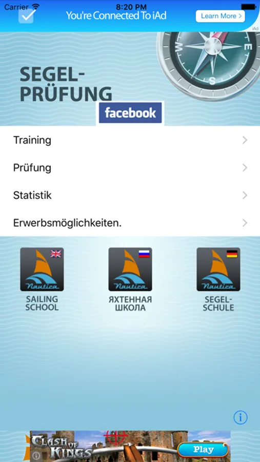 Das ist ein interaktives Lehrmaterial für Seemänner, Kapitäne der Segelyachten und Motoryachten. Das kann als Hilfsmaterial zur Vorbereitung auf die Prüfung oder zum Auffrischen der Kenntnisse vor der Seefahrt dienen. Die Segelschulen können mit Hilfe dieses Tests die Studenten überprüfen. Der Test besteht aus folgenden Teilen – Fragen, Abbildungen, Animationen, Prüfungs-, Lehr- und Hilfsteil. Der Test wird regelmäßig durch neue Fragen ergänzt.