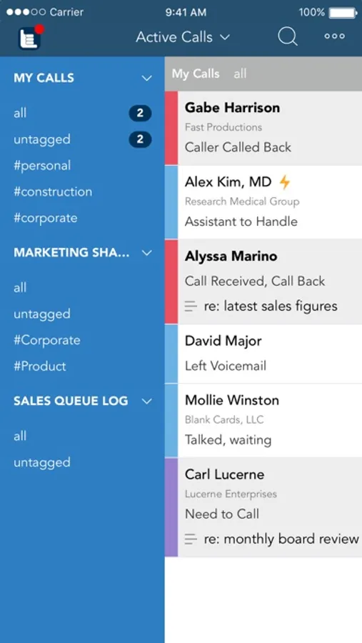 1. Interactive Shared Logs allow all calls and information to be shared with everyone in a group, team, client or project - great for groups that collaborate on the same calls.