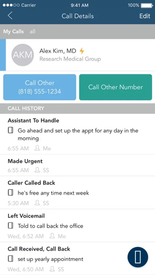 The CallPlease mobile app keeps you up-to-date on calls and messages. See what’s new/urgent, review call history, make and return calls, and mark what happened at the end of the call.