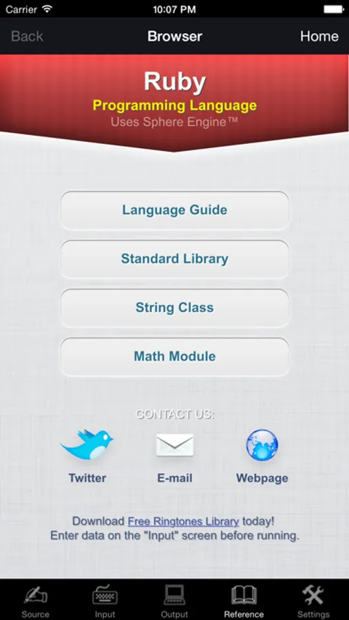 The classic Ruby programming language for iPad, iPhone and iPod touch. Programming language is a perfect tool for studying, complex mathematical calculation, entertainment and many other useful tasks. The application is especially useful for learning the Ruby programming language. You have to buy compilations inside the application. Internet connection is required.
