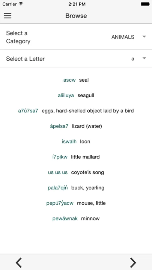The Northern St'at'imcets language app is a media-rich bilingual dictionary and phrase collection comprised of words and phrases archived at the online Aboriginal language database FirstVoices.com. Word and phrase definitions are illustrated with audio recordings, and images. Users can generate their own thematically organized flashcards and bookmark words or sentences to create their own lists.