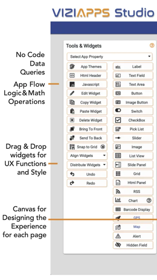 Rapidly create mobile-first, enterprise workflow apps with ViziApps. ViziApps allows operations professionals and business innovators to quickly create engaging, custom-branded enterprise mobile apps visually, with little or no coding expertise required.