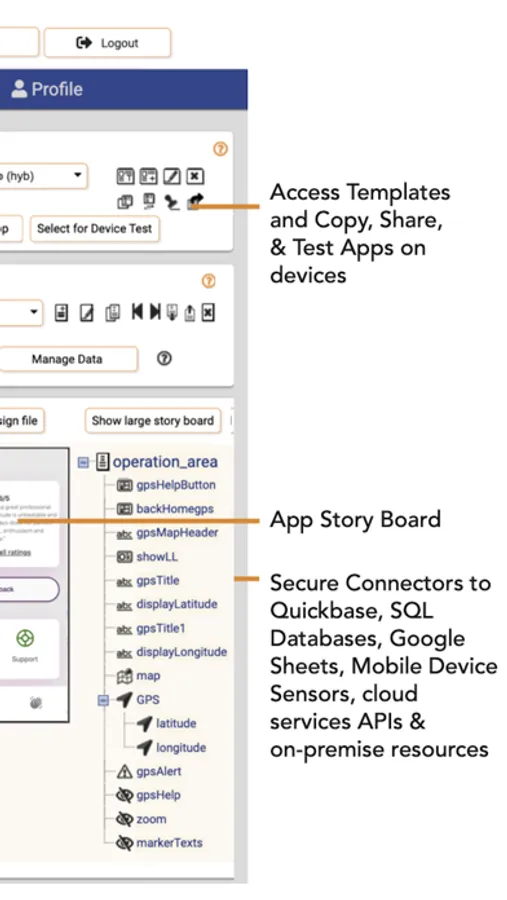 ViziApps provides a SaaS cloud-based mobile workflow and UX app builder that gives you all the tools you need to create and manage mobile-first apps. Your apps can be optimized for your unique business workflows and securely integrated with your SQL databases, Quickbase applications and other data.