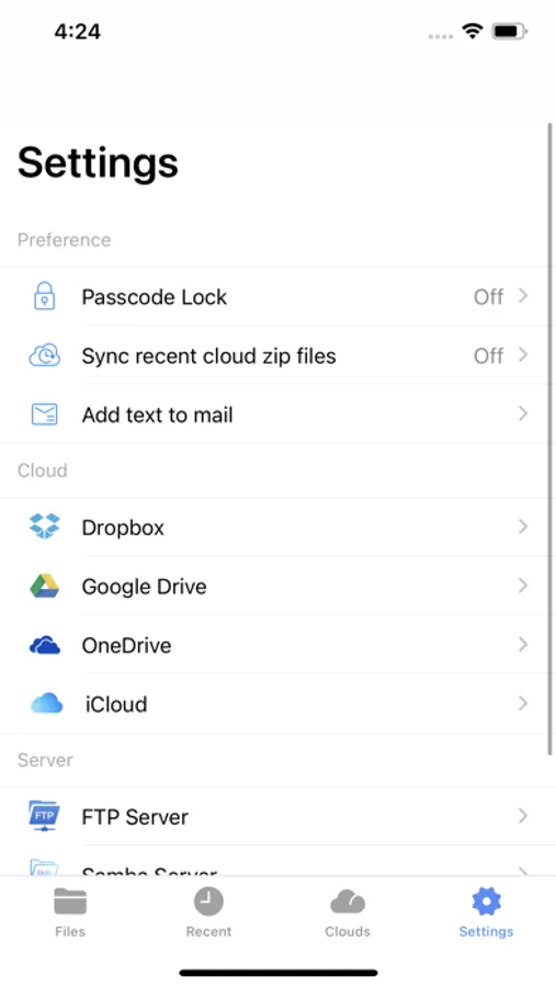 • Connect directly to your Dropbox, Google Drive, OneDrive and iCloud accounts to zip, unzip and share files