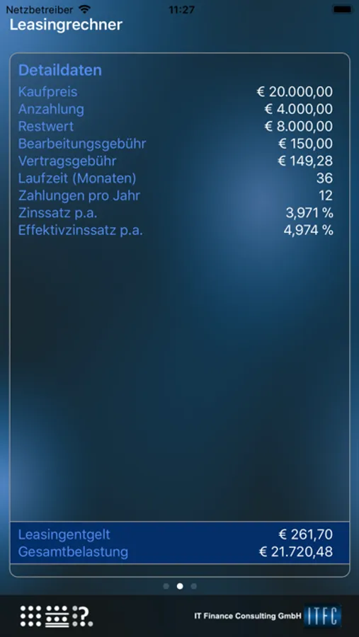 Der Leasingrechner berücksichtigt neben den üblichen Eckdaten auch Nebenkosten wie Vertrags- und Bearbeitungsgebühr.