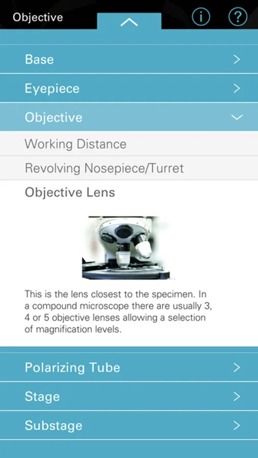 Explore a compound microscope, virtually! This mobile app lets you zoom around a 3D model of a compound microscope, learn about the different parts and explore photos and videos and read text demonstrating how its used.