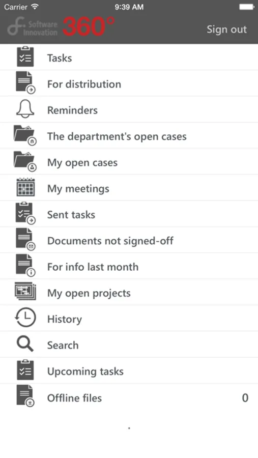 360° eWorker for iOS is not designed to produce documents, but to offer a clear overview and access to cases and documents, enabling you to complete case management tasks and to keep processes active when you are out of the office.