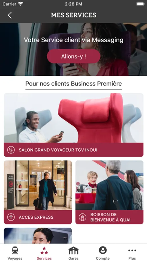 Visualisez instantanément tous les services compris ou accessibles grâce à votre e-billet Business Première, Pro Seconde, Liberté, Forfaits, et assimilés Pro (espace dédié pour les clients Business Première, Mon Chauffeur, etc.)