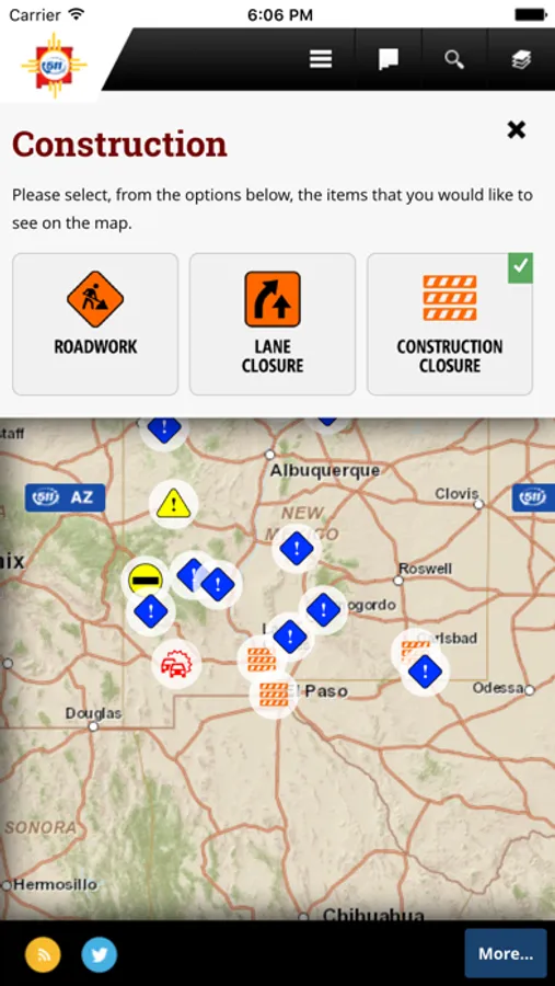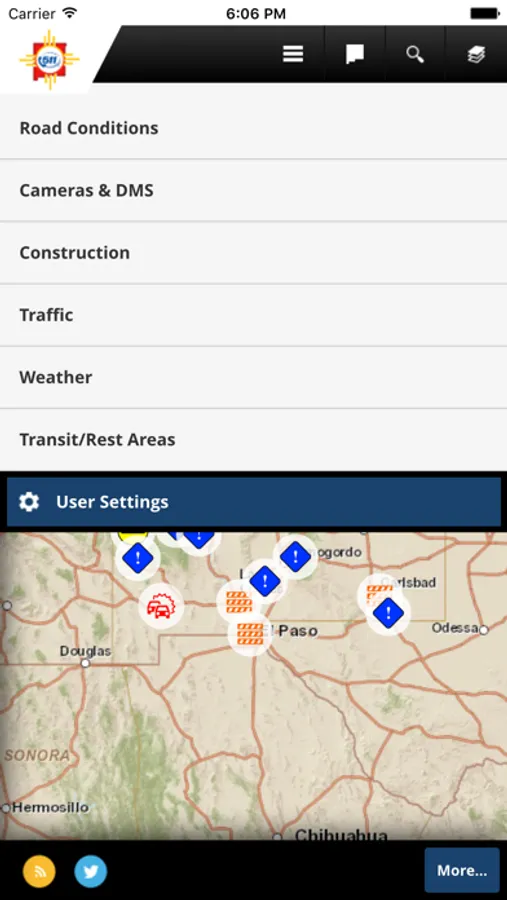 The NMDOT Travel App provides New Mexico and interstate motorists with mobile access to up-to-date travel and traffic information from the New Mexico Department of Transportation’s, Intelligent Transportation Systems Bureau (ITS).