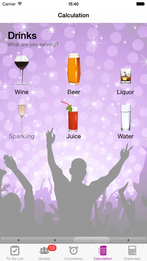 • Individual drinks calculator, adapted to the drinking habits of your guests