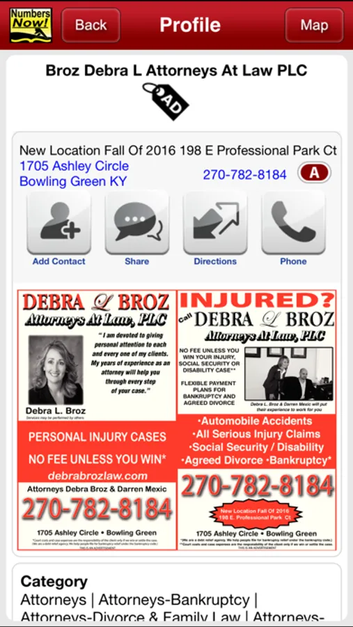 Search the Yellow Pages for businesses in your area or any city nationwide. Access business addresses, phone numbers, websites, email, ads, coupons and other enhanced listing data of our participating yellow page publishers. Sort by distance to find the closest results or sort by relevance of your search term. View results in a list view or toggle through results on a map. Zoom and scroll features in the map view allow users to find results in any area. Easily find local businesses anywhere in the United States with the Numbers Now! iPhone/iPad Application.