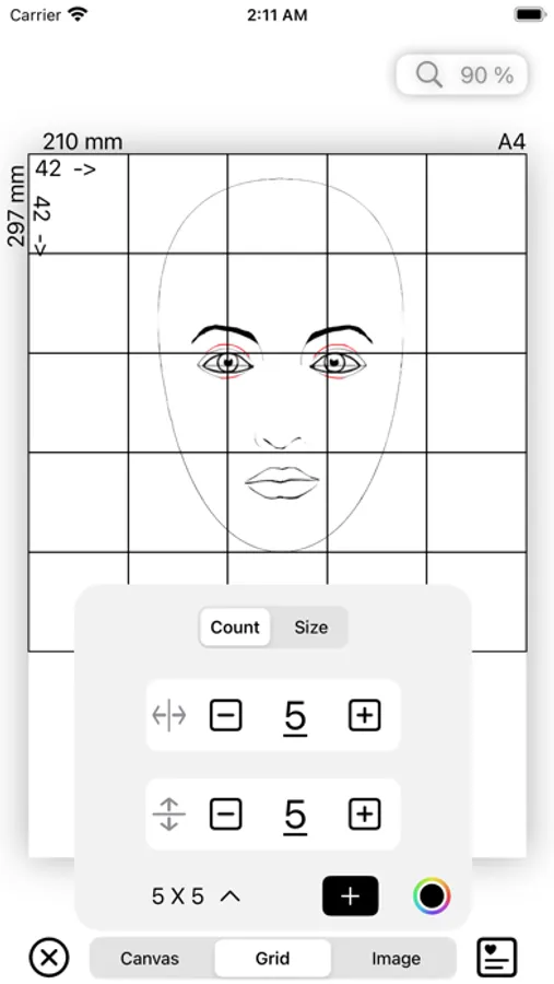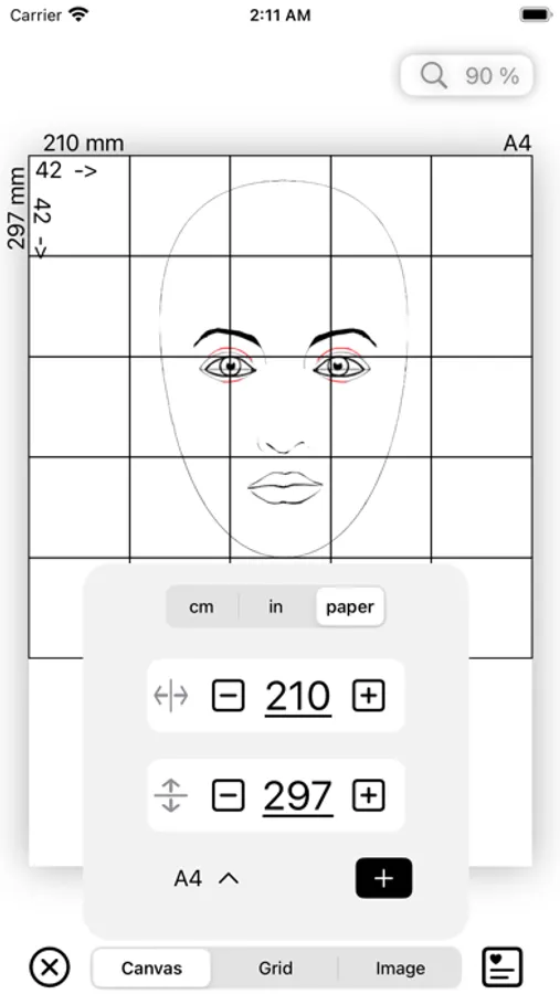 Simply set canvas size to correctly lay out individual grid elements and see physical dimensions, then set grid properties either as square blocks or blocks of specific size, exactly as you need them.