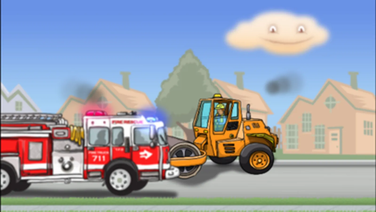 Follow alongside a Road Roller as it drives through a neighborhood. Help the Road Roller smooth out streets and pot holes. Along the way have fun dodging things in the street or rolling over them ... Whoops! orange traffic cones, messy cans of paint and more! A real treat for those little Road Roller/Construction Vehicle enthusiasts and a great way to encourage curiosity and interaction for all. Touch the driver and he honks the horn. Touch a cloud as it passes by and it smiles and hums. Touch other trucks as they drive by and they honk! The neighborhood is interactive. When your child touches people, animals, or vehicles they make sounds and perform actions. Its like a moving story book!