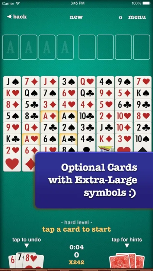 Solitaire makes it amazingly natural to control the cards movements and to feel in control: With tap-to-place, you simply tap the right card and it magically does the right move, or when you prefer you can also use our assisted drag-and-drop to move a card anywhere it creates a valid move.