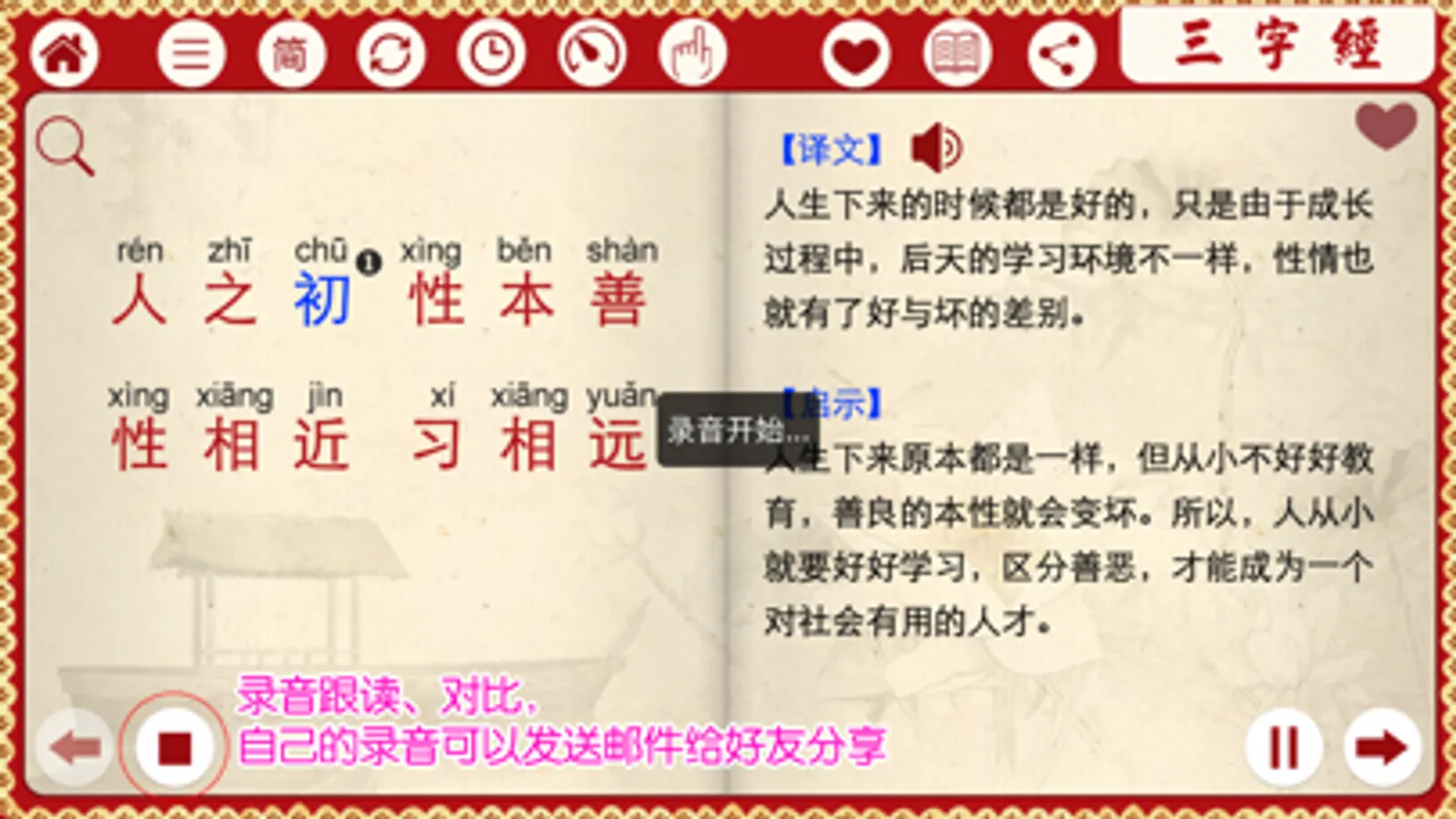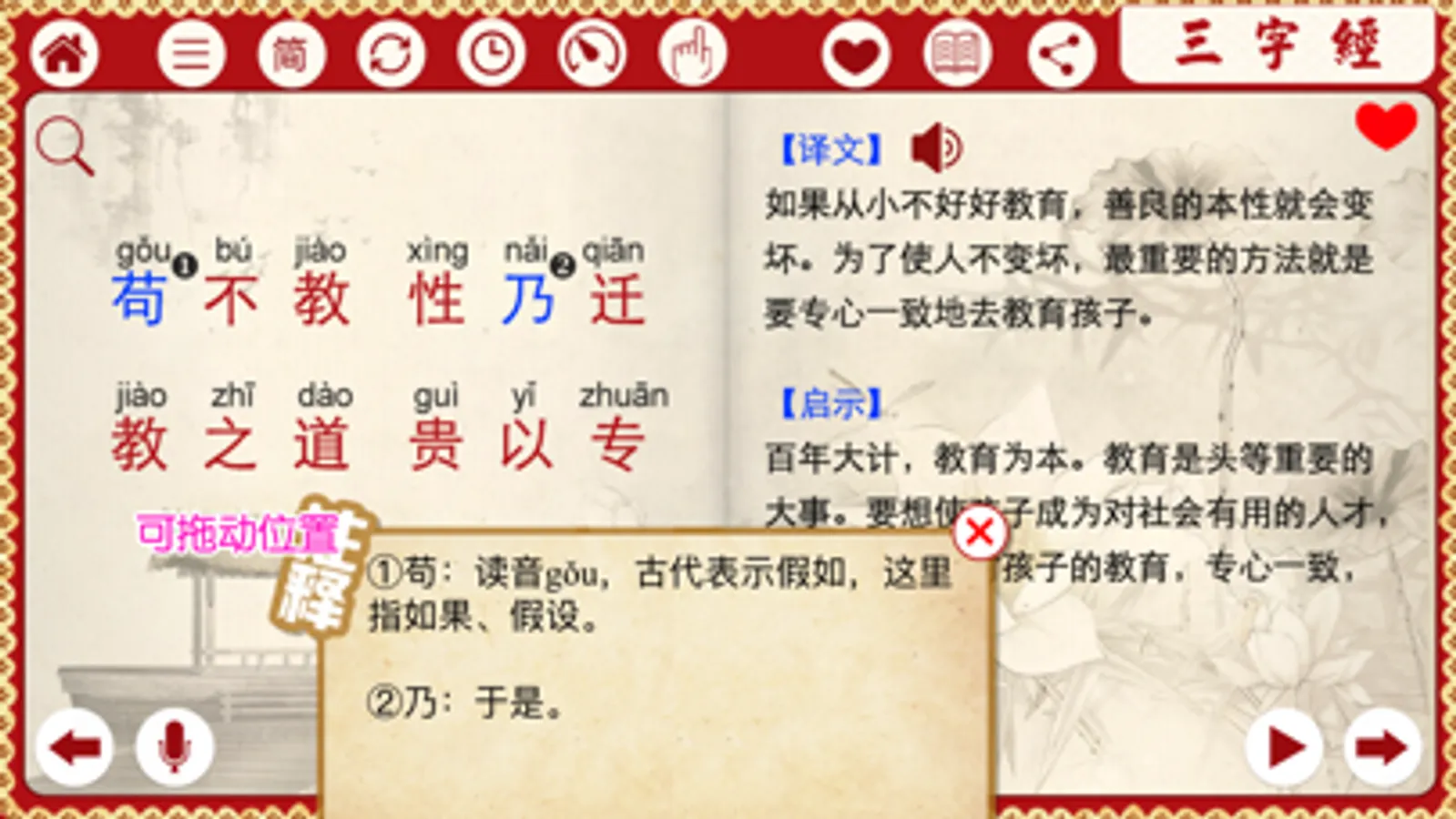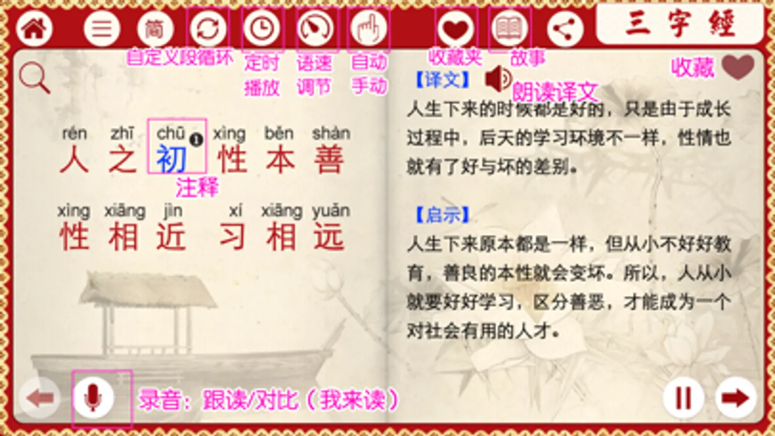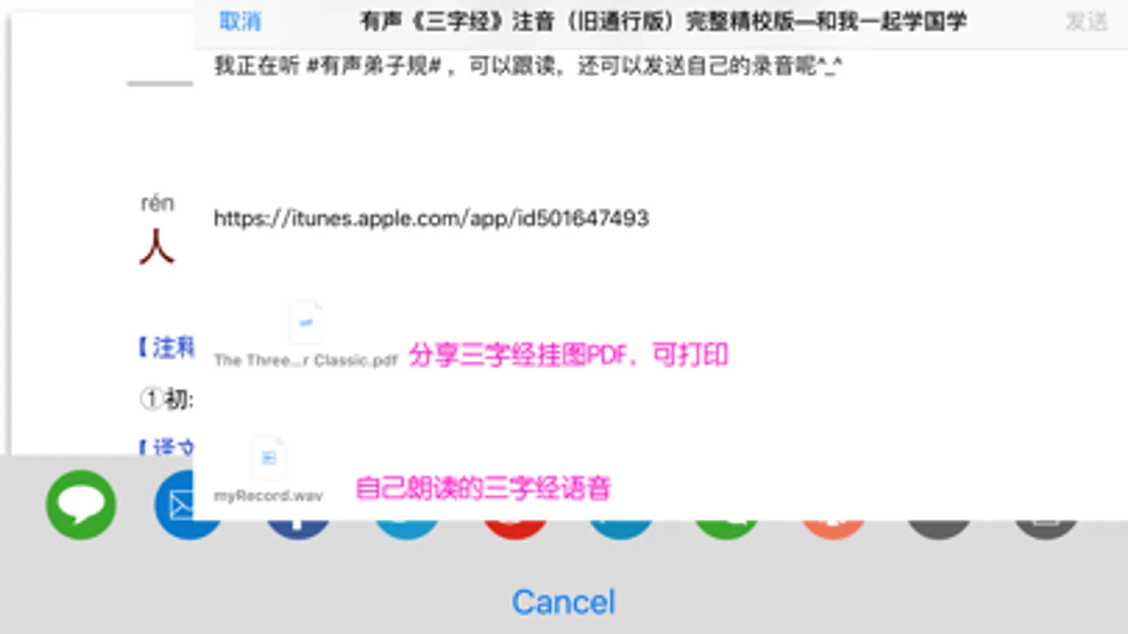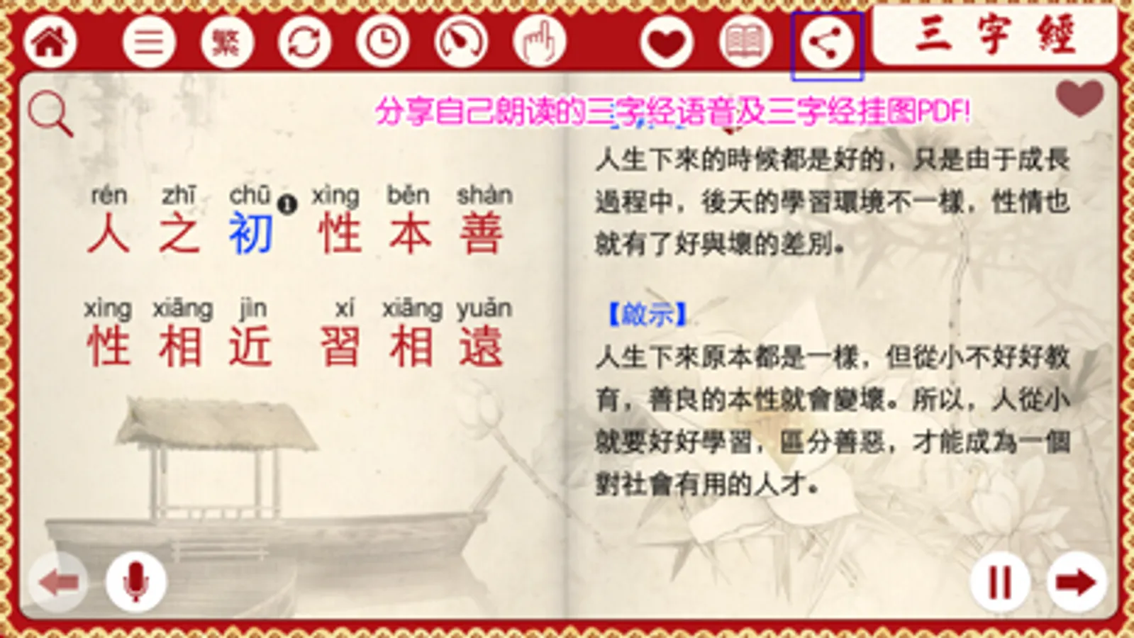 8、增加有声三字经完整精校版(注音、注释、译文)挂图PDF文件,可分享,可打印!