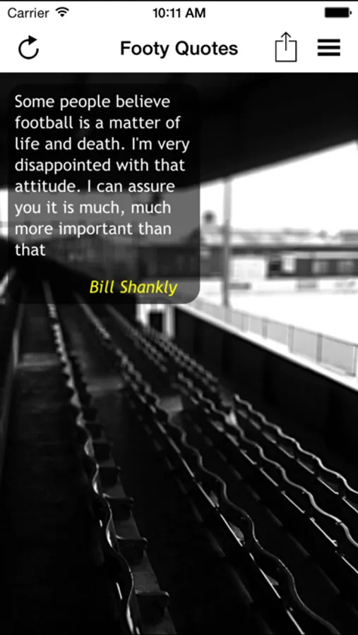 If you want to know who said these gems, you need the Footy Quotes app. The beautiful game has brought us hundreds of memorable quotes and famous one liners over the years, from footballers, commentators and fans alike. We have hundreds of the best British football quotes from Bill Shankley to Jose Mourinho, from players like Eric Cantona and Thierry Henry, plus many commentators and pundits. If you love the beautiful game, you'll love these quotes. So, when you're on your way to the match and want to impress your friends, or if you want a profound statement after the game, pull out our football quotes app and see what we've got!