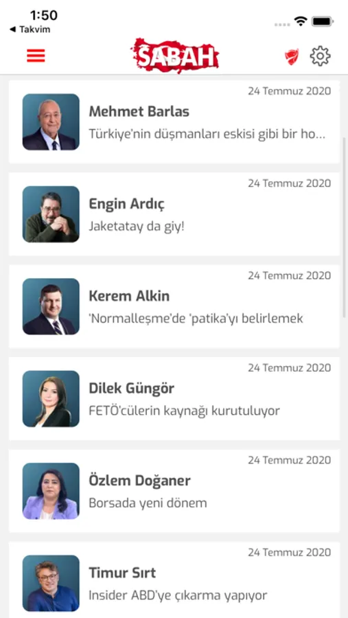 * Türkiye'nin en güçlü köşe yazar kadrosunu bünyesinde barındıran Sabah Gazetesi ile siz de sıcak gündemi yakından takip edebilirsiniz.
