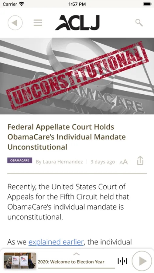 The American Center for Law and Justice (ACLJ), with Chief Counsel Jay Sekulow, is dedicated to ensuring the ongoing viability of freedom and liberty in the United States and around the world. The ACLJ’s iOS app connects you to citizens concerned about pro-life issues, Christian persecution worldwide, our Constitution, Israel, and breaking news.