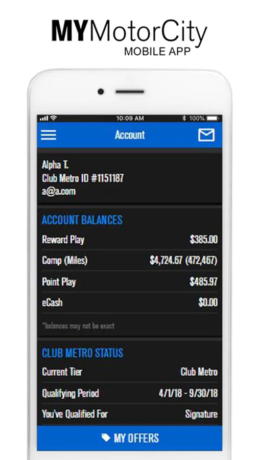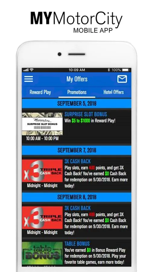 Use the MYMotorCity app to quickly and easily view your casino and hotel offers and account balances, convert comp to Reward Play®, make reservations at Iridescence, buy Sound Board tickets and check upcoming show schedules, book hotel rooms, see the current Bad Beat jackpots, and so much more.