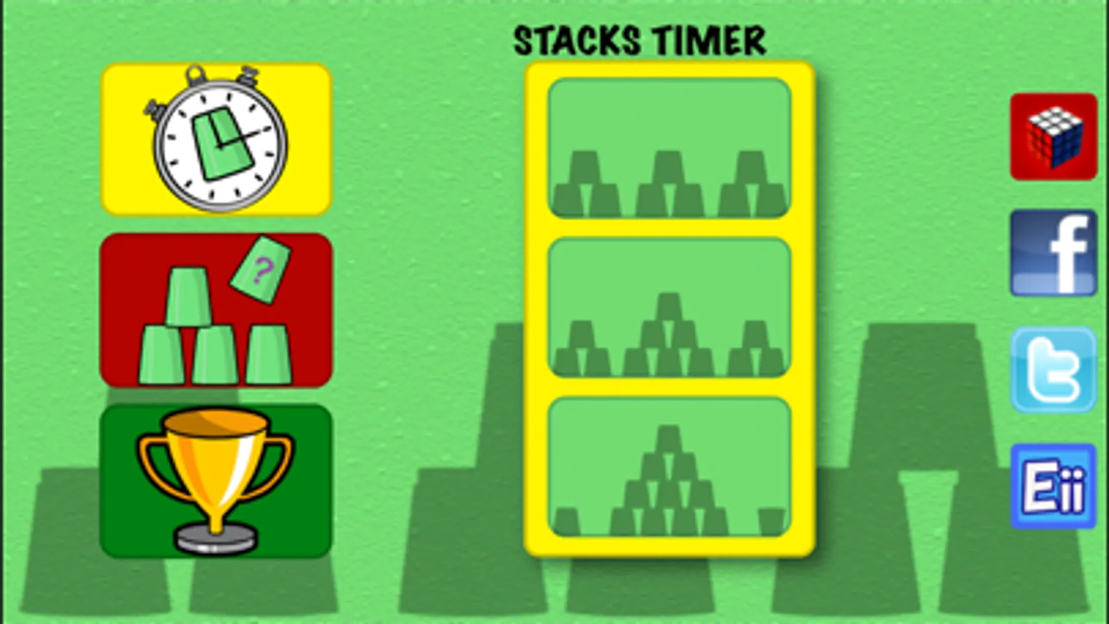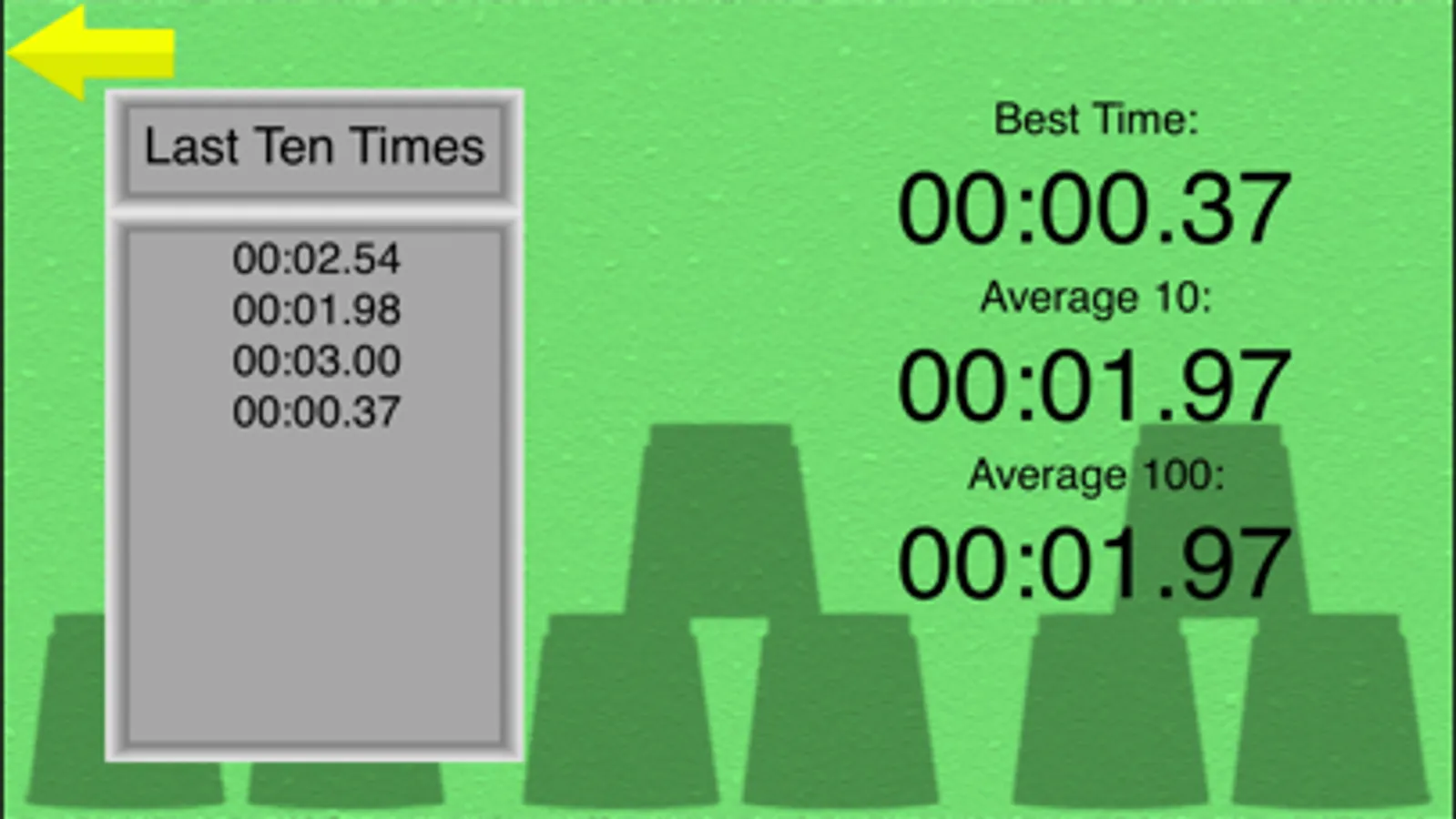Simple and easy to use speed stacks timer. Whether you have just started stacking or you’re an experienced stacker, this app will time you stack, save you highest score, allow you to tweet your score, give you your average times, it can even teach you how to stack whether your stuck with a particular part of your stack or even if you've never tried before.