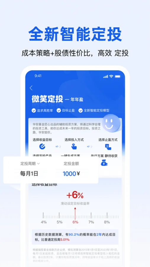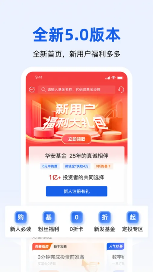 华安基金是由中国证监会监管的正规公募基金公司。作为国内首批成立的公募基金之一,深受6000万用户信赖。本应用是由华安基金打造的一款安全、专业、便捷的掌上投资平台,集成在线交易、现金管理、投资工具箱及智能理财等服务功能,一站式满足您的理财需求,是您身边的全天候投资专家。