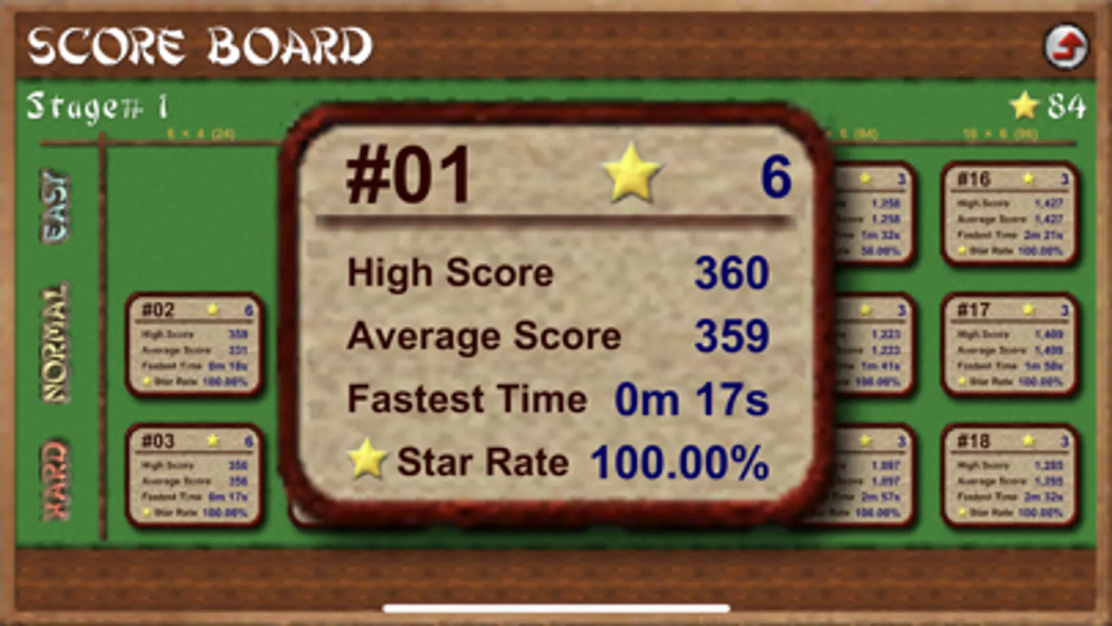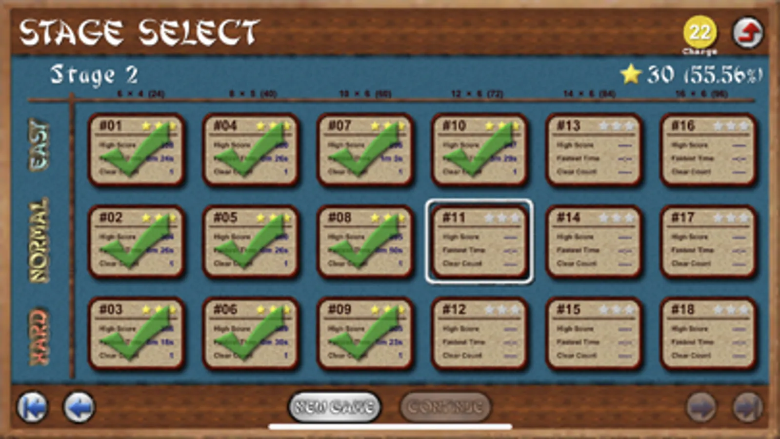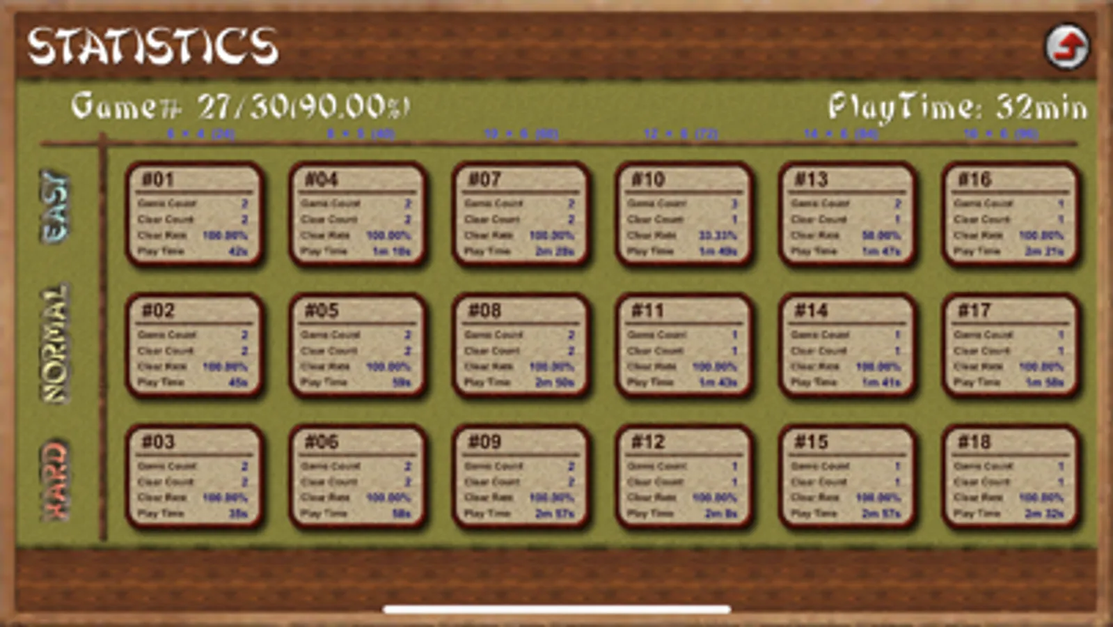 1. 18 different game level: Easy, Normal, Hard × tiles array size.