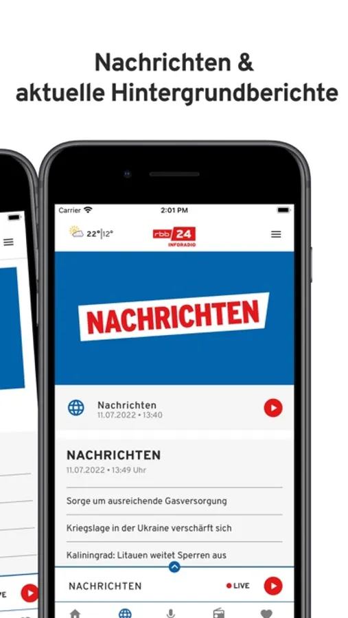 Unsere App hat einen völlig neuen Anstrich bekommen: mehr Inhalt, mehr Vielfalt, mehr rbb24 Inforadio! Mit der neuen Smartphone- und Tablet-Version können Sie immer die aktuellen Nachrichten lesen und hören. Außerdem bekommen Sie alle rbb24 Inforadio-Podcasts und können immer die letzten vier Stunden rbb24 Inforadio nachhören.