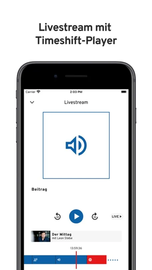 Hören Sie unser Programm auf Ihrem mobilen Gerät jederzeit und überall live oder zeitversetzt.
