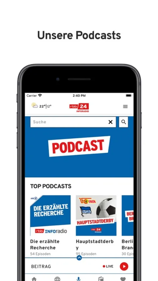 Die rbb24 Inforadio-App – Podcasts und Radio für unterwegs