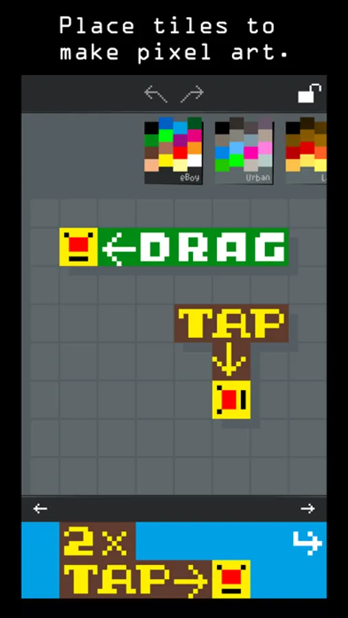 – Create art with pixel tiles