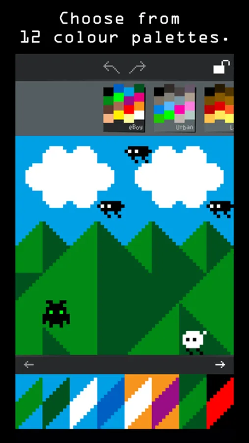 “This is an awesome little app. So much care has gone into making it, and it shows everywhere you look. The sound effects are spot-on, the text labels for the color palettes are gorgeous, even the Share menu icons for Twitter and Facebook are pixellated. They’ve thought about every little detail.”