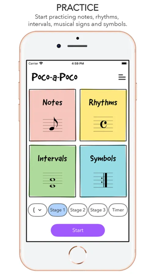 "Poco-a-Poco: Music Reading Essentials" helps learning and practicing sheet music reading, understanding musical signs and symbols, note names, rhythms, intervals and more.