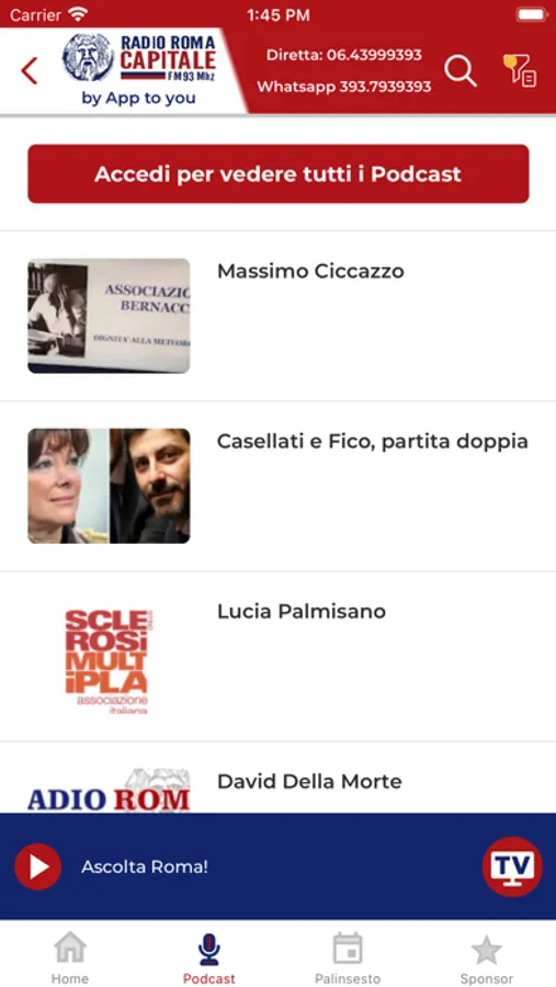 - creare un tuo profilo nella community di Radio Roma Capitale per accedere ai podcast storici