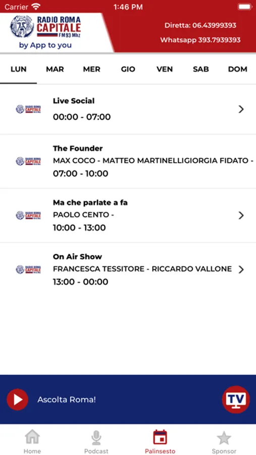 - ascoltare live in streaming le trasmissioni di Radio Roma Capitale