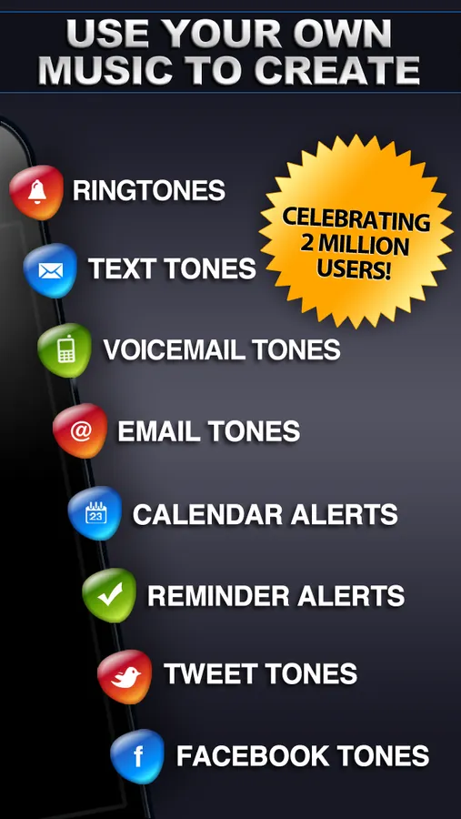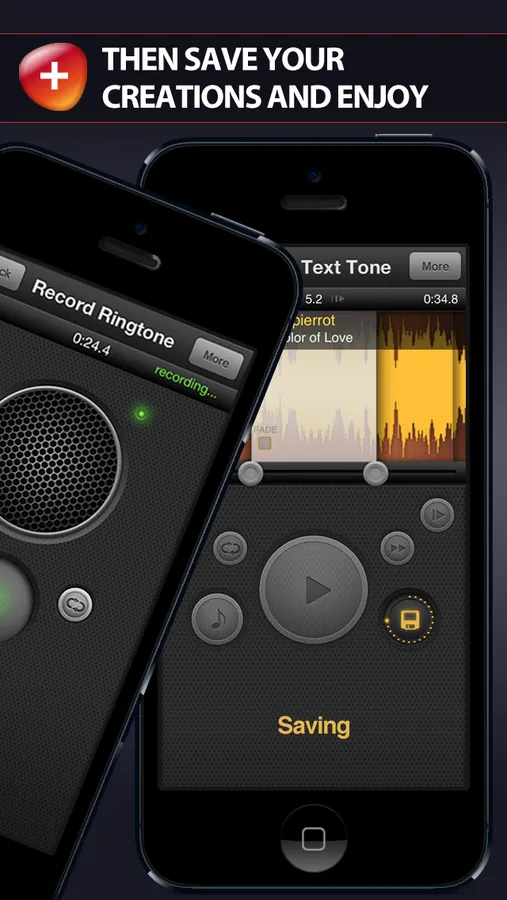 Even RECORD your own voice or sounds and save them as ringtones & alert tones. Try it now! FREE!