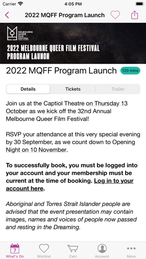 The official 2022 app for the MQFF FESTIVAL allows you to explore, book tickets and streamline your Festival experience.