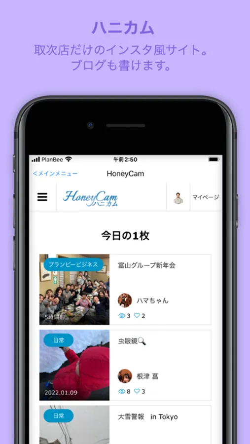 It is the application which can contribute a diary with a photograph to the SNS "PlanBee SNS" easily.