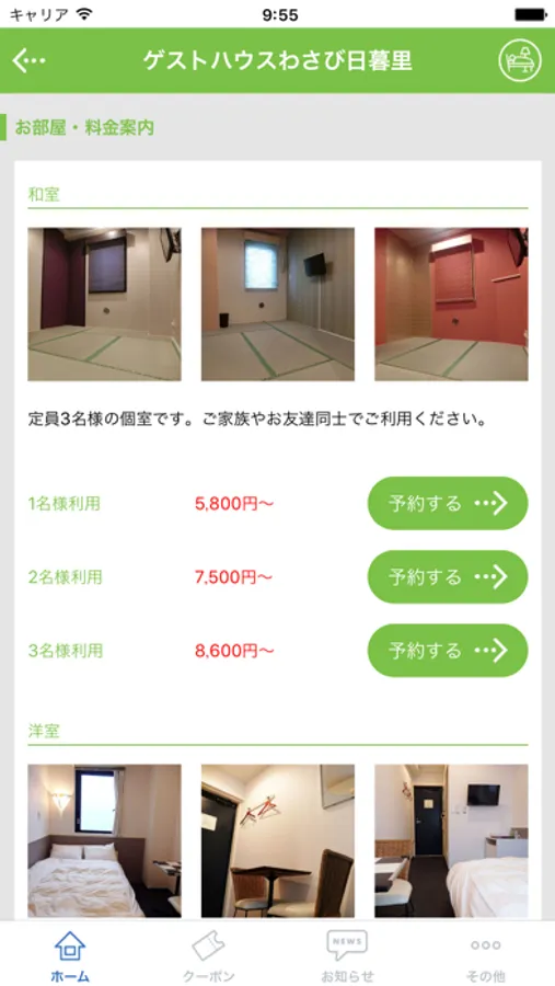 ・「ホステルわさび」の施設情報確認