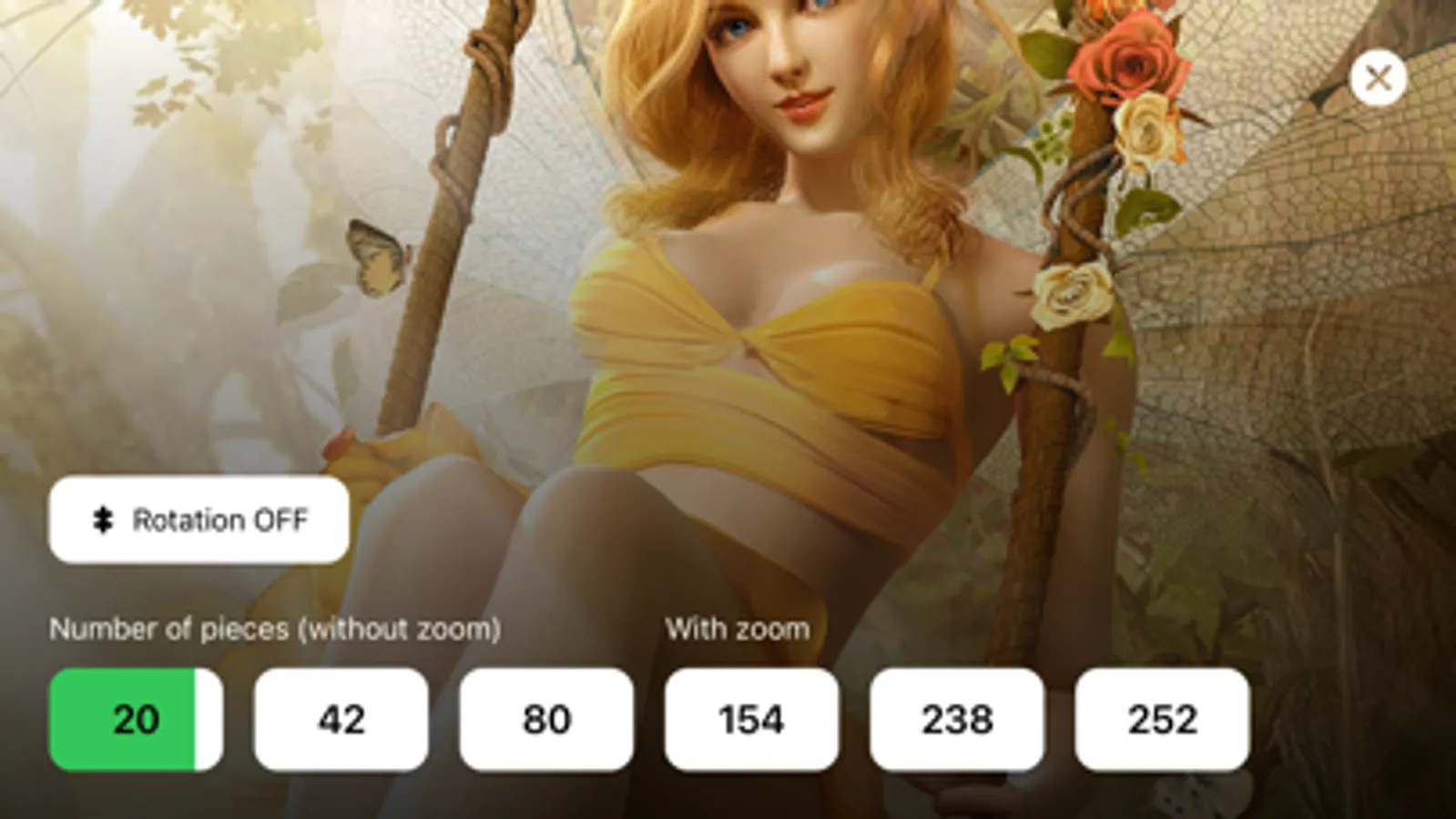 - 8 levels of complexity: from  20 pieces up to 1110 pieces, available for any puzzle;