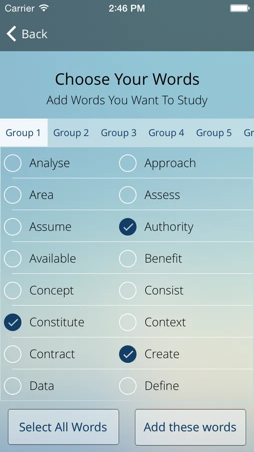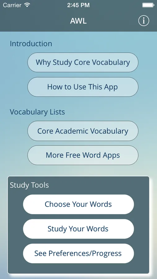 The app contains simple tools to help you download, email and organize the AWL, as well as study tools to quickly and efficiently learn the words, keep detailed record of your progress and the ability to email your progress to yourself or a teacher.