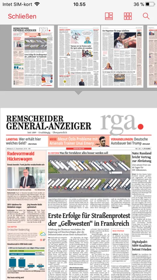 E-Paper RGA bringt Ihnen den Remscheider General-Anzeiger kurz nach Redaktionsschluss, schon in der Nacht, auf Ihr iPad, oder Ihr iPhone. Nutzen Sie die intuitive Bedienung des Touchscreens, um innerhalb des E-Papers zu blättern und die Darstellung der Seiten auf dem Display zu vergrößern.