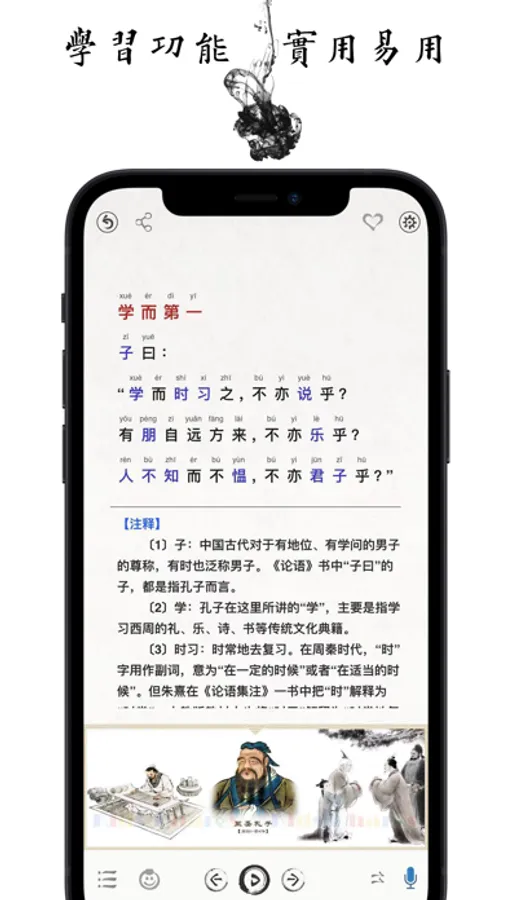 其中蒙学约34本,内容大部分配备“白云”老师深情的朗诵、准确的拼音、完整的注释、甜美的译文、易懂的启示、有趣的故事、水墨风插画、还有实用/易用的录音跟读学习功能。