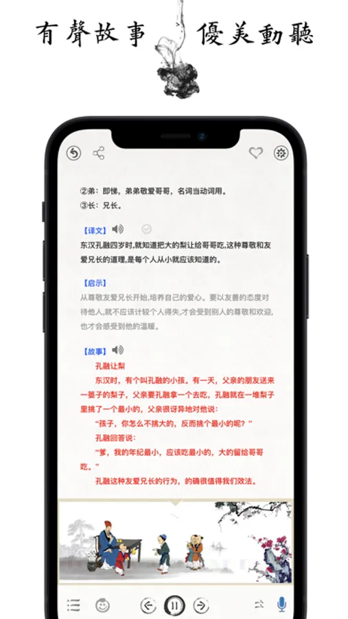 4、正文由“白云”老师朗读,部分启蒙国学可选儿童朗读,译文也有语音,对儿童早教有帮助。