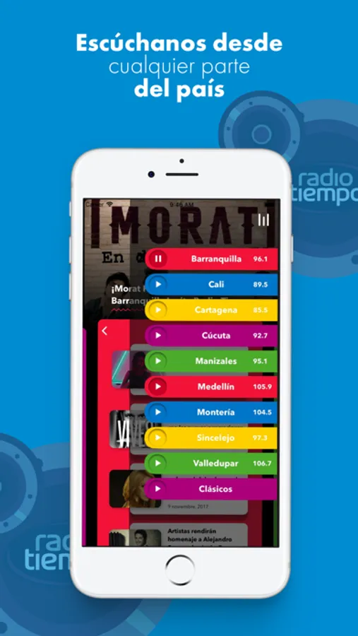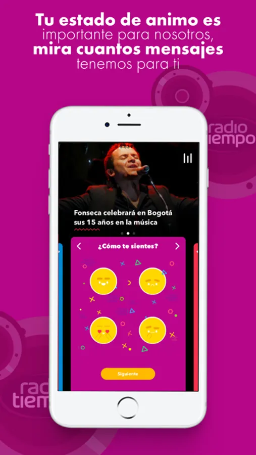 La nueva aplicación móvil de Radio Tiempo motivará tus días con mensajes para acompañarte mejorar tu estado de ánimo. Además, te permitirá estar enterado de las noticias de tus artistas favoritos, escuchar la programación de todas las ciudades, inscribirte en concursos y conocer el conteo de las canciones más sonadas en Las 21 únicas, cada semana.